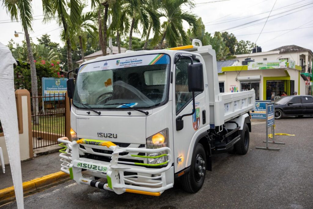 De igual forma, en el municipio de Cayetano Germosén, se realizó la entrega de un camión compactador y un camión volteo con el propósito de fortalecer la gestión municipal y mejorar la recolección de desechos sólidos.