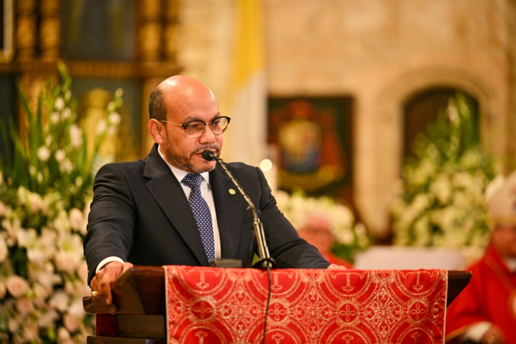 El funcionario público estuvo acompañado en la eucaristía por su esposa Degnis De León de Valdez y su hijo Cristian Valdez De León.